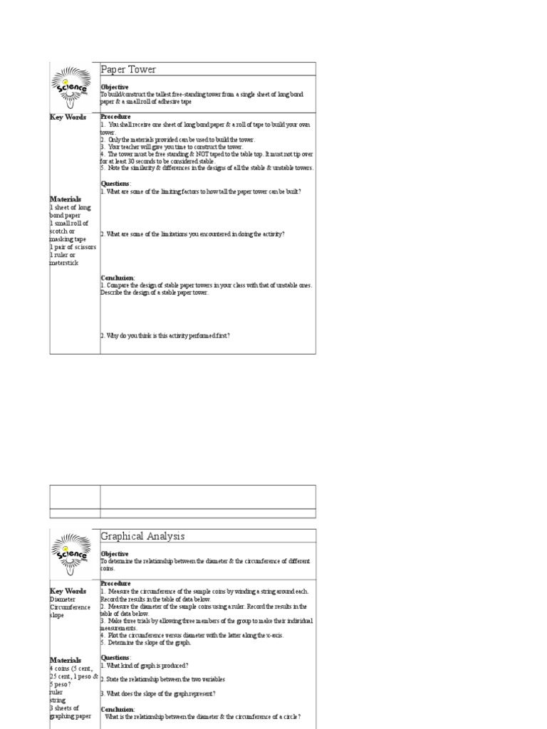 1 Sheet Of Paper Tower - Create the tallest tower you can using only paper and tape. Here is a great procedure to build a paper tower out of just 1 piece/sheet of paper. Start off small and use only one (1).