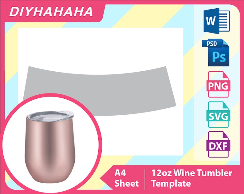 12oz Wine Tumbler Template A4 Sheet SVG, PNG, PSD and Docx Etsy
