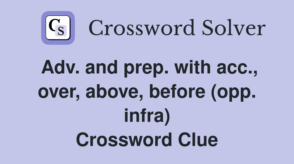 Adv. and prep. with acc., over, above, before (opp. infra) Crossword