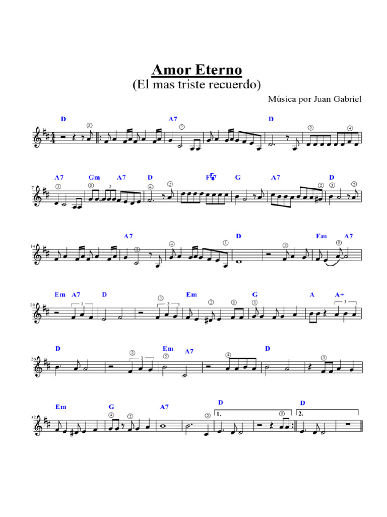 Amor Eterno Violin Sheet Music - Share, download and print free sheet music of amor eterno juan gabriel for piano, guitar, flute. Contains parts for score, armonía, guitarrón, trumpet 1, trumpet 2, violin 1, violin 2, violin 3,.