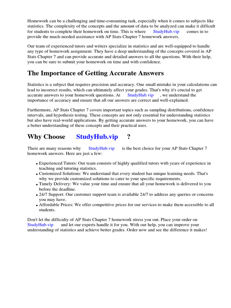 AP Stats Chapter 7 Homework Answers PDF Statistics Homework