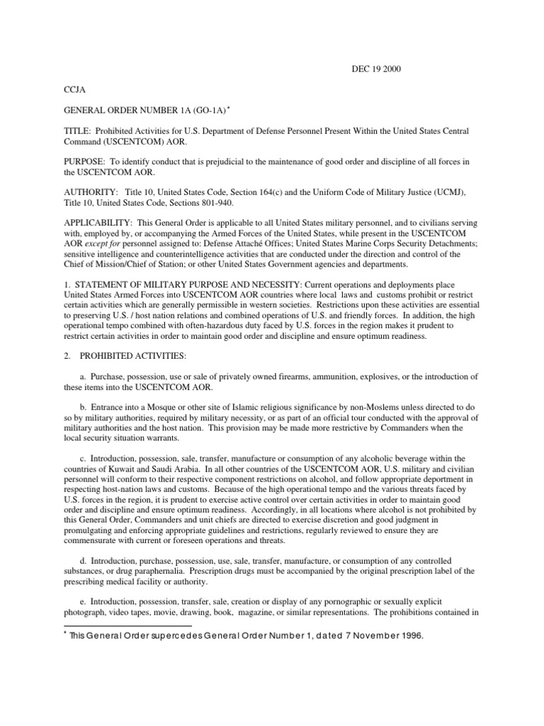 General Order 1A (GO1A) PDF Uniform Code Of Military Justice