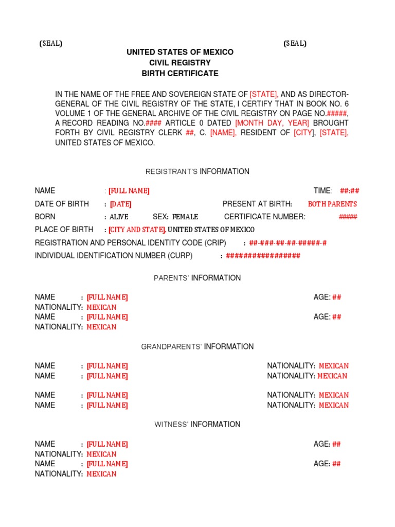 Birth Certificate Translation Template Mexico - Cocodoc is the best site for you to go, offering you a convenient and modifiable version of mexican. A template to translate a foreign birth certificate.