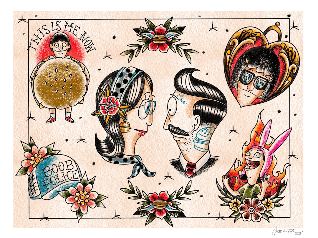 Discover pinterest’s best ideas and inspiration for subtle bobs burgers tattoo. Traditional style tattoo flash with characters from “bob’s burgers”. Printed on a3 300gsm white. Discover pinterest’s best ideas and inspiration for bobs burgers flash tattoo. Print is on high quality a4.