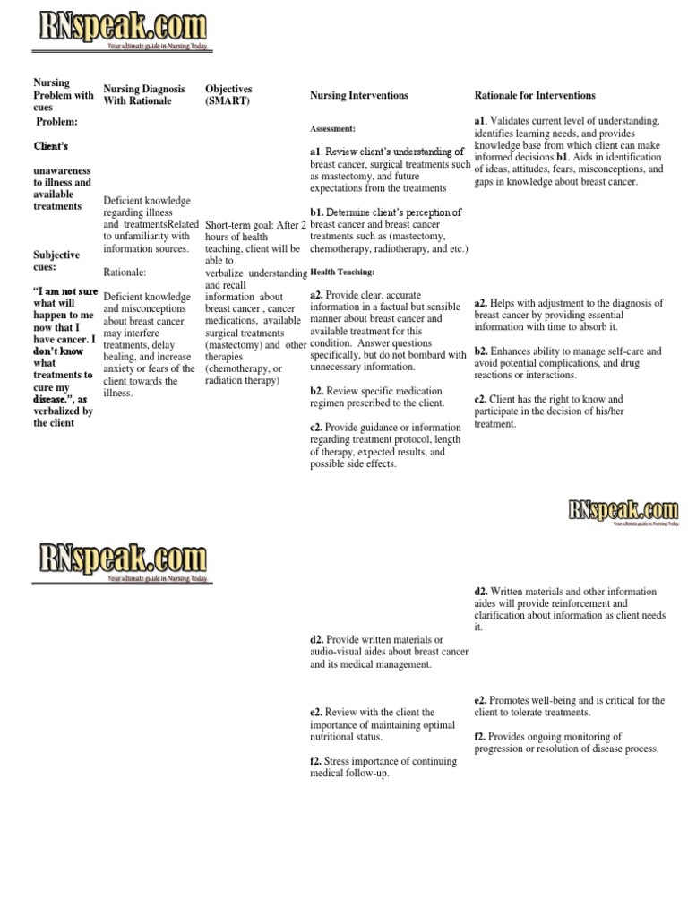 Nursing Care Plan For Breast Cancer NCP PDF Breast Cancer Cancer