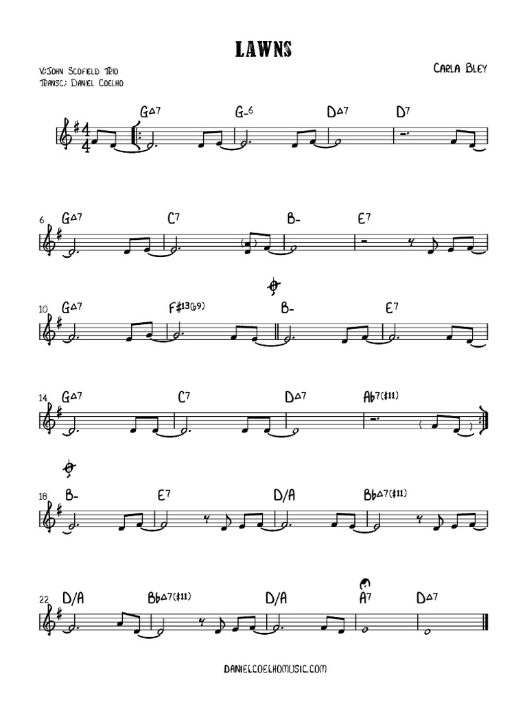 Share, Download And Print Free Sheet Music Of Lawns Carla Bley For Piano, Guitar, Flute And.
