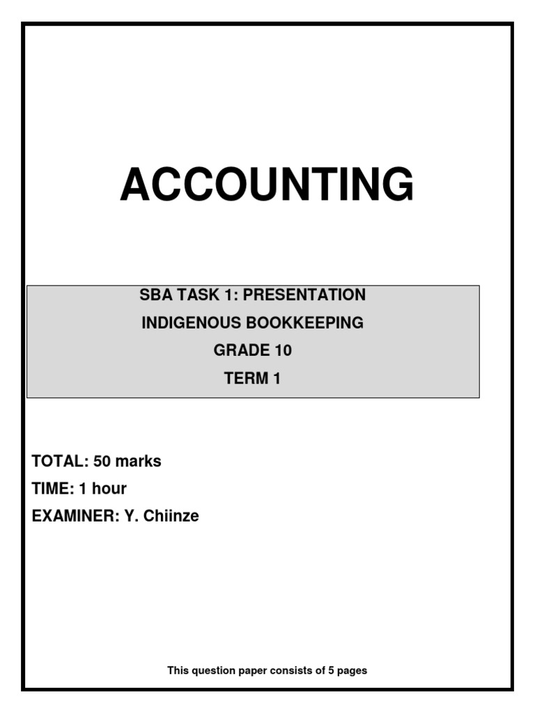 2022 Grade 10 Accounting Control Test 1 • Teacha!