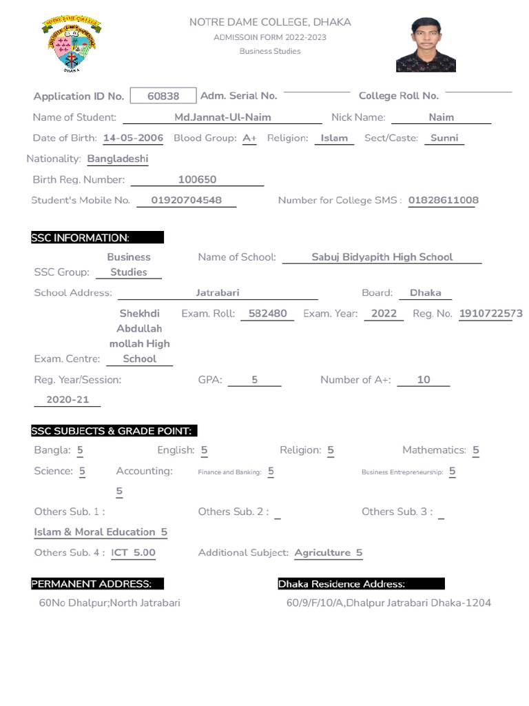 Admission Form PDF