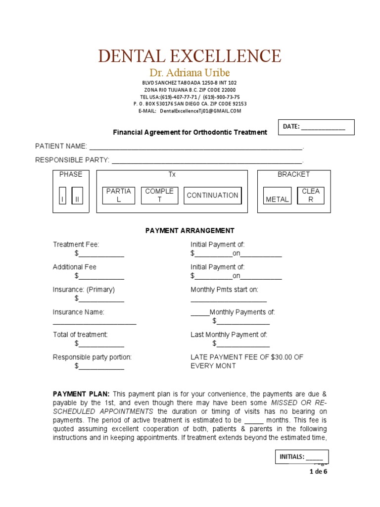 Dental Financial Agreement Template to Download Free Dental, Dental