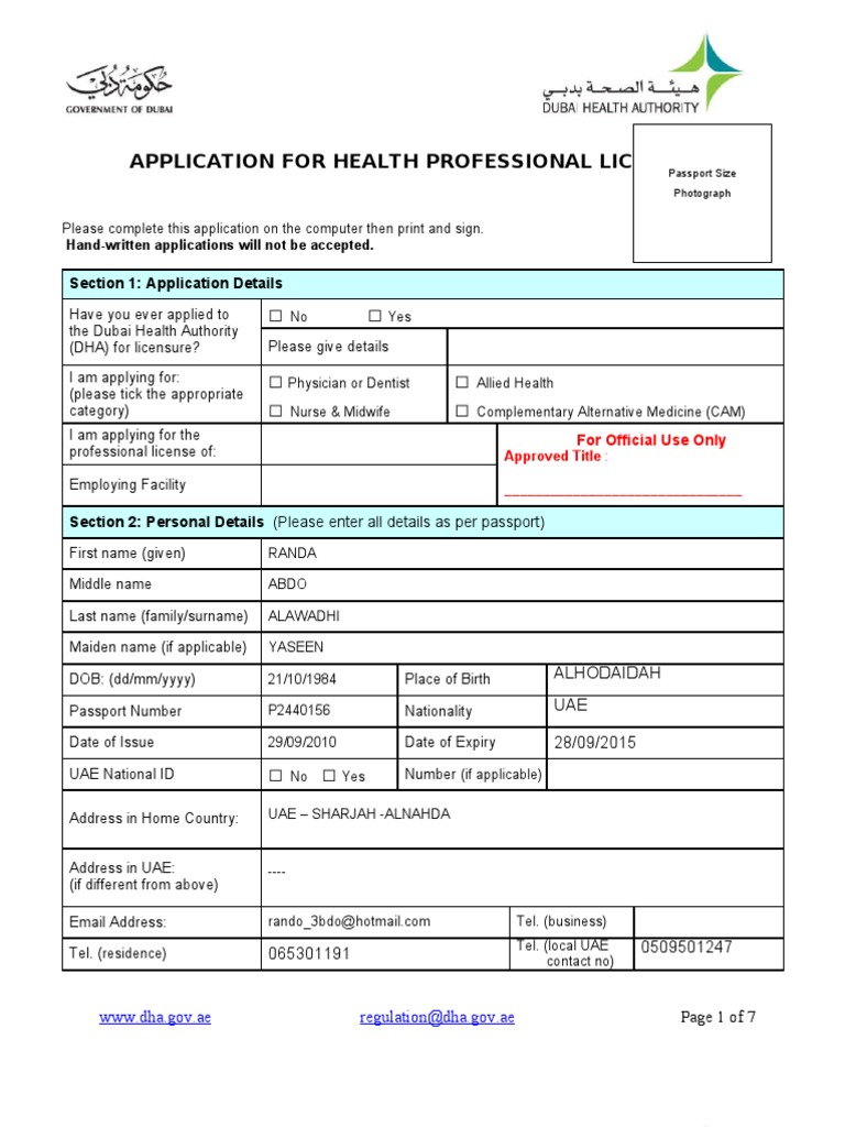 Application form dha