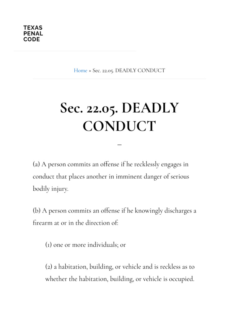 Sec. 22.05. DEADLY CONDUCT Texas Penal Code PDF