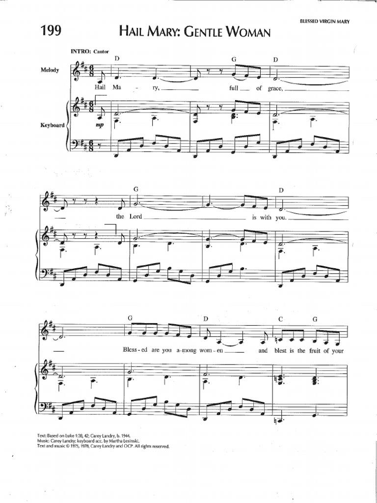 Share, download and print free sheet music of hail mary: Gentle woman carey landry and martha.