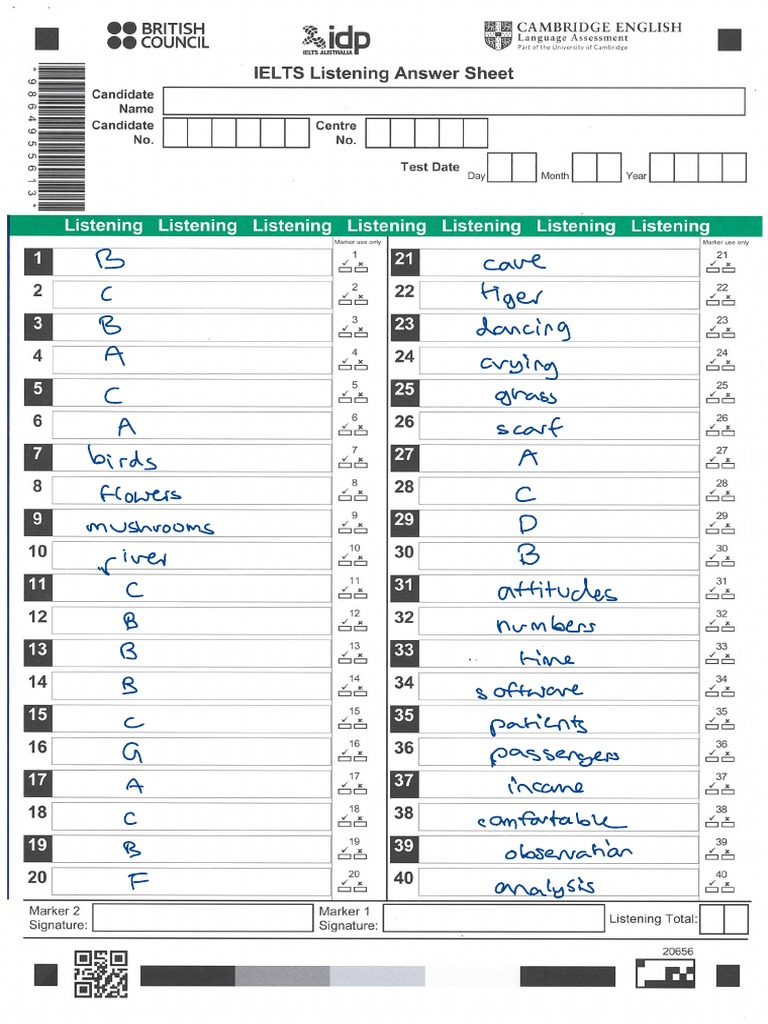 Ielts Listening Answer Sheet - Find the answers to the ielts listening practice test with a key to determine your score.