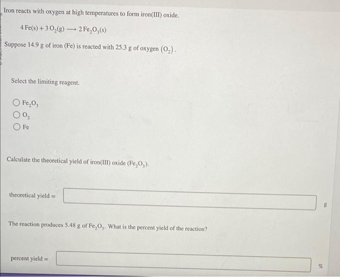 Solved 3. Iron reacts with oxygen to form iron (III) oxide