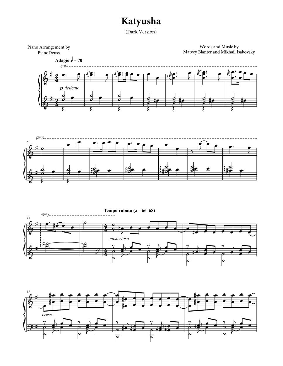 Katyusha (Dark Version) Sheets by PianoDeuss