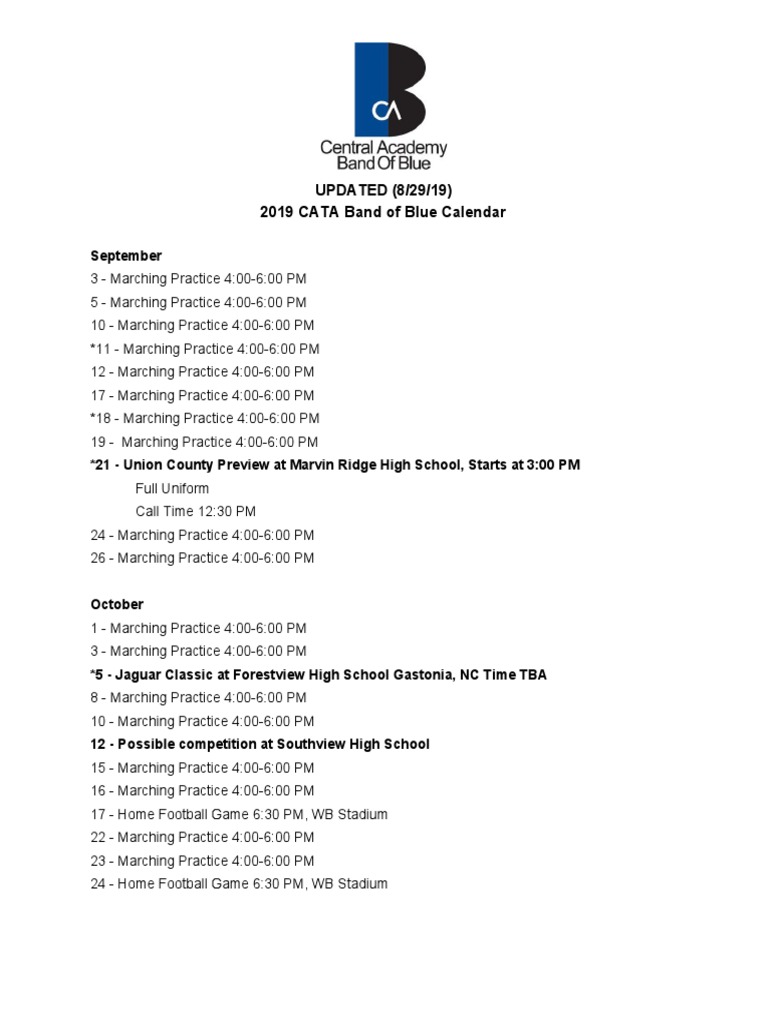 2019 Marching Band Calendar PDF