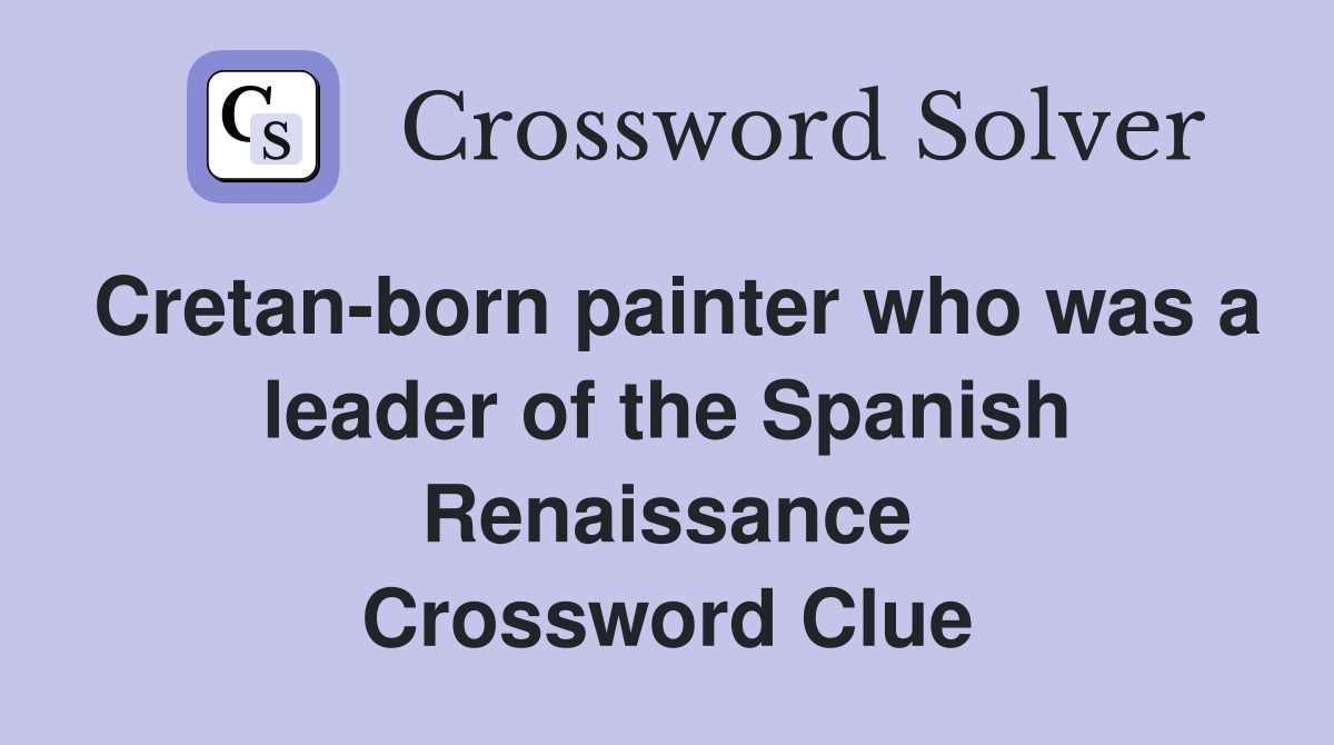 The crossword solver found 30 answers to nickname of a cretan artist (. We have got the solution for the nickname of a cretan artist (. We have the answer for nickname of a cretan artist (. The crossword solver found 30 answers to nickname of cretan artist, 7 letters crossword. Nickname of a cretan artist (.
