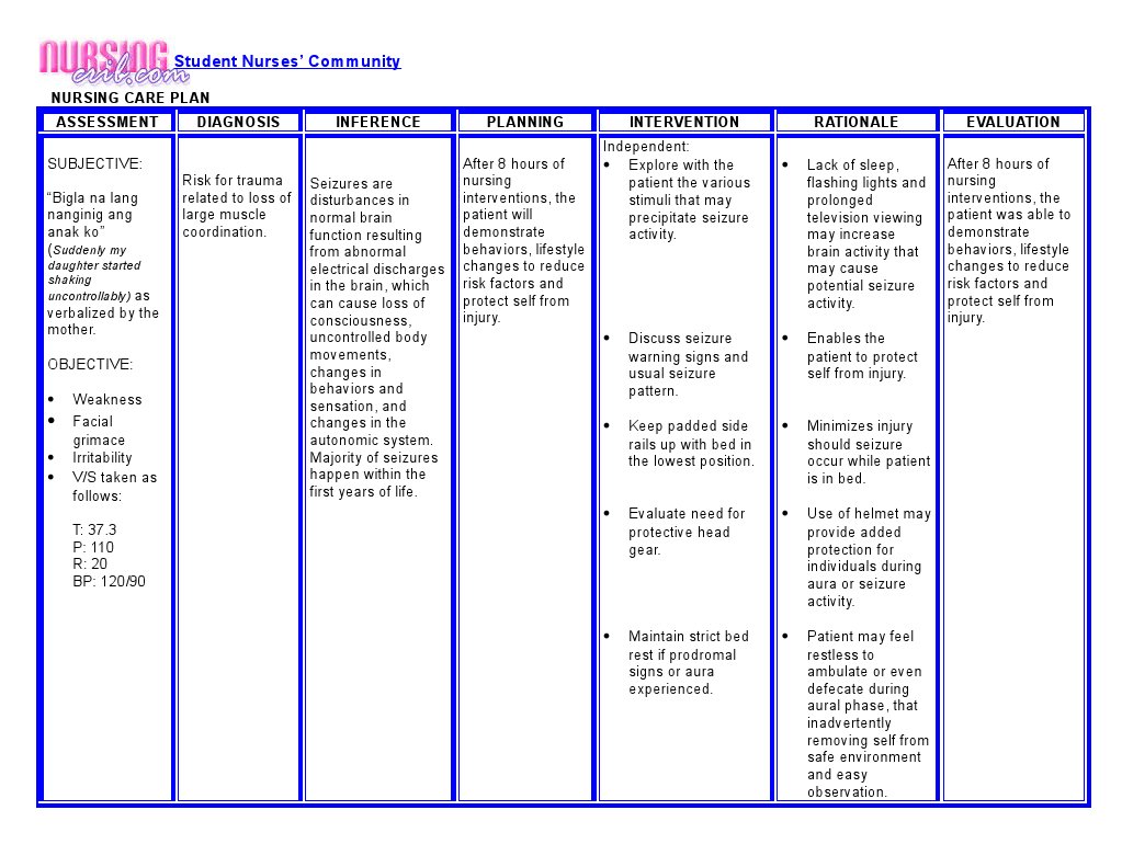 NURSING CARE PLAN FOR SEIZURE Journey of Nurse Begins Here