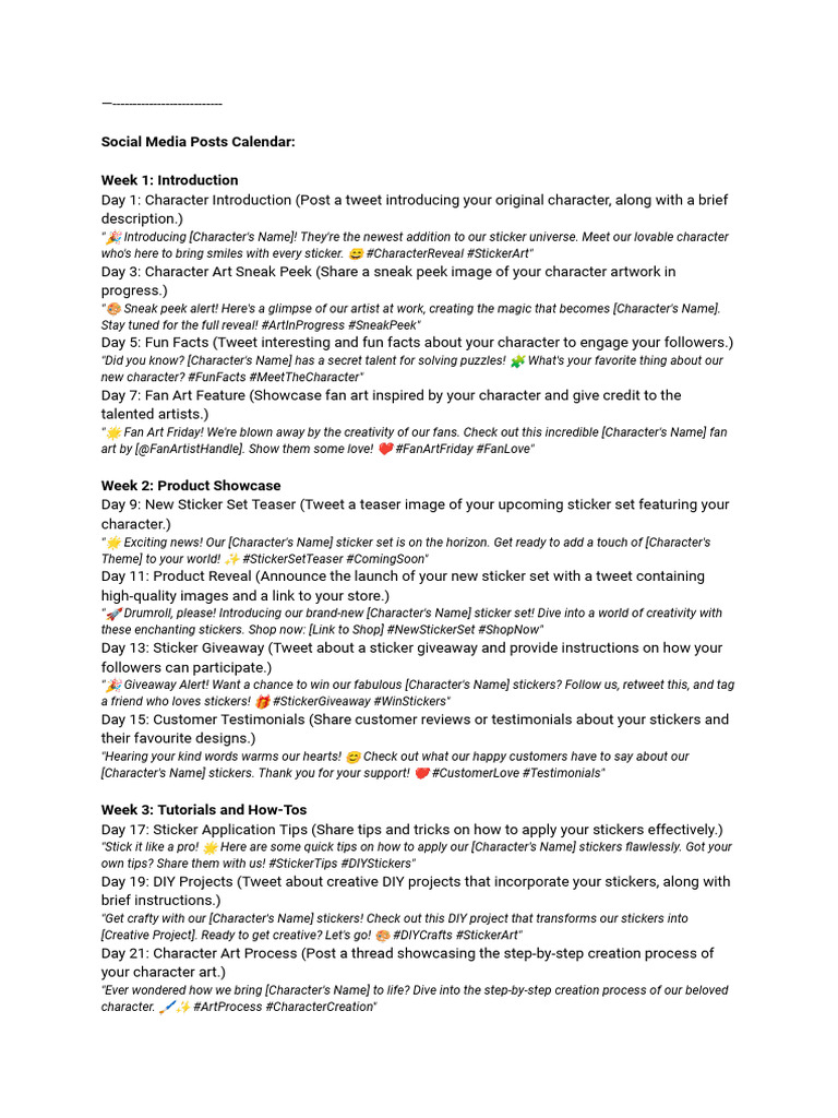 Social Media Calendar PDF Hashtag