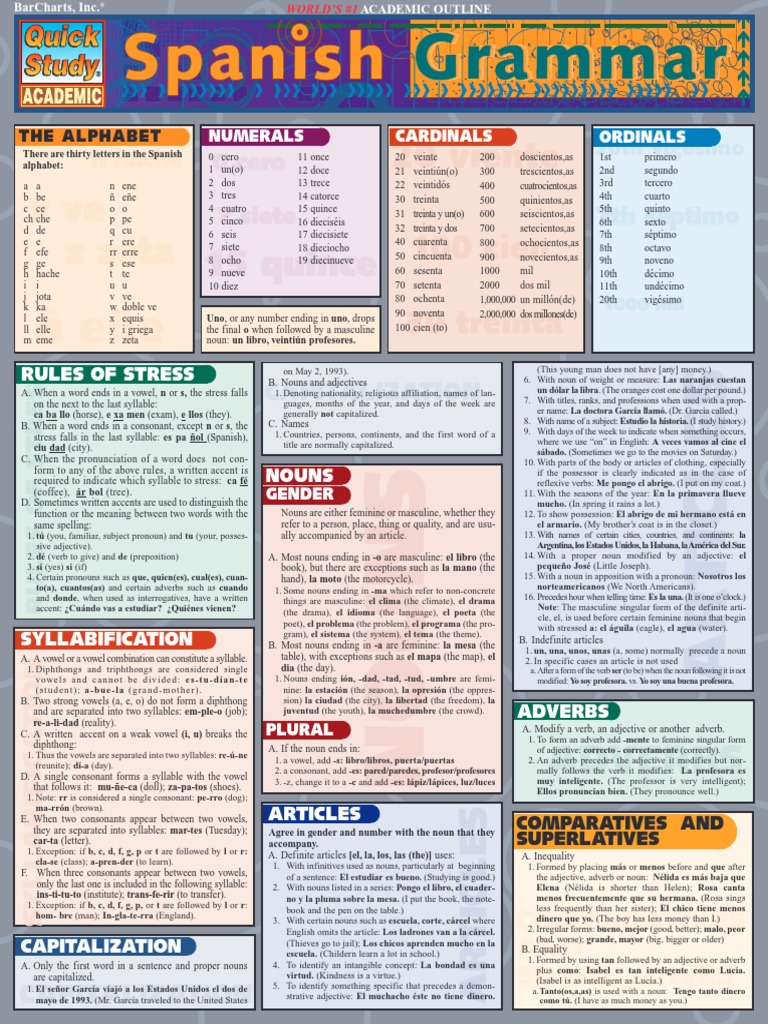 Spanish Grammar Cheat Sheet Download Printable PDF Templateroller