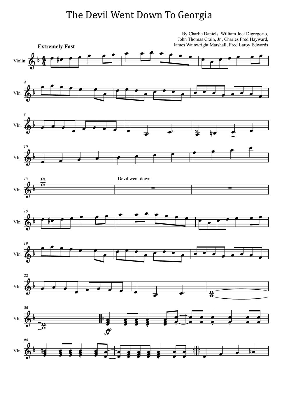 The Devil Went To Georgia Violin Sheet Music - He is known primarily for his number one country hit the devil went down to georgia, and.