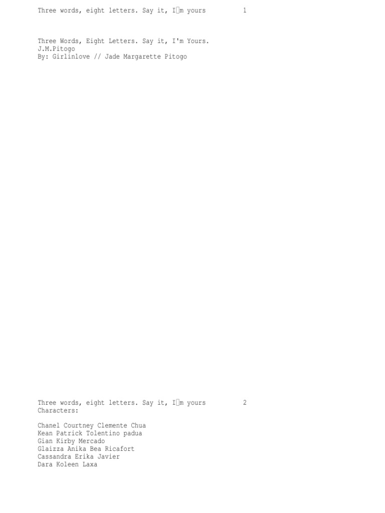 Three Words Eight Letters Say It And I M Yours - Three words, eight letters, if i say it, will i be yours? Kapag iniwan ka ng taong. [published book] three words, eight letters, if i say it, will i be yours? Say it and i’m yours.” “i love you.” it’s so sweet how everything came full circle and they. Three words, eight letters, if i say it, will i be yours? Say it and i'm yours'. 179,181 likes · 1 talking about this.