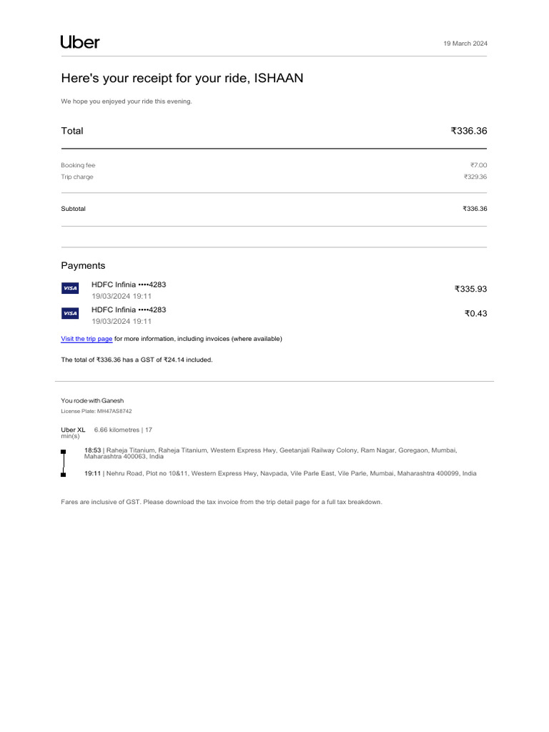Uber Printable Receipt